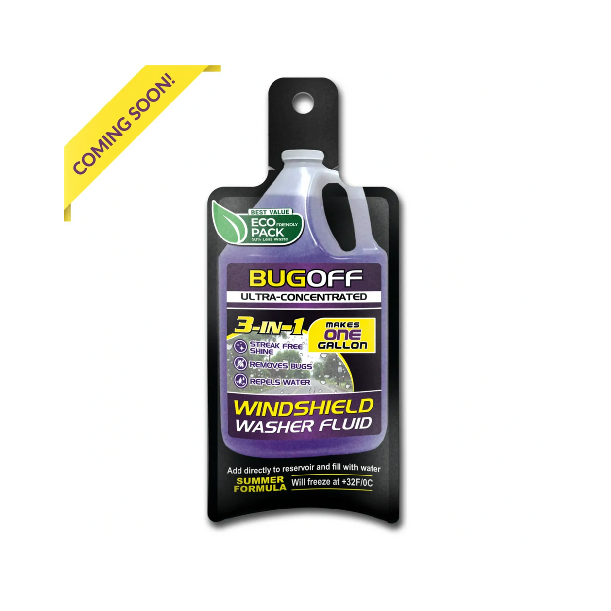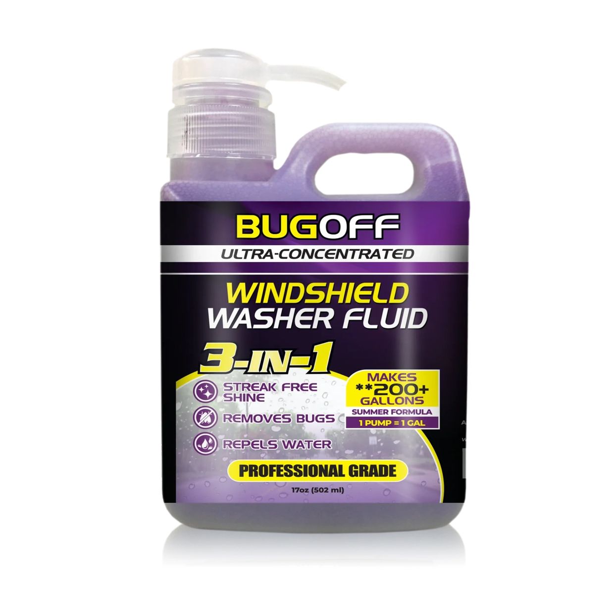 BUGOFF Ultra-Concentrated Washer Fluid is a 3-IN-1 formula designed with premium quality ingredients. The formula includes water beading technology, powerful cleaners to remove bug grime and gives a streak-free shine.